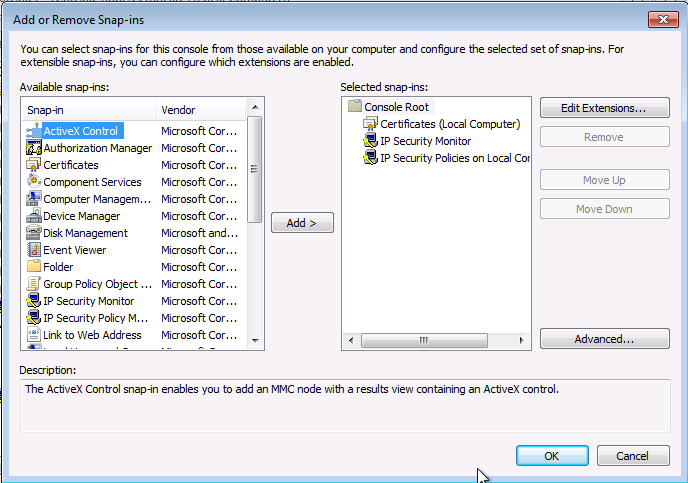Ouverture de la Microsoft Management Console :