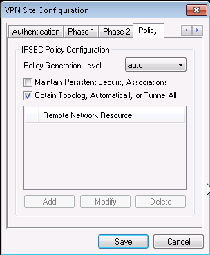 Le client Shrew Soft ne supporte pas le mode Transport par contre il va permettre d'utiliser du chiffrement AES (plus secure que 3DES). Donc pour faire communiquer nos deux hôtes je n'ai pas trouvé d'autres solutions que de créer une interface virtuelle sur la machine GNU/Linux.