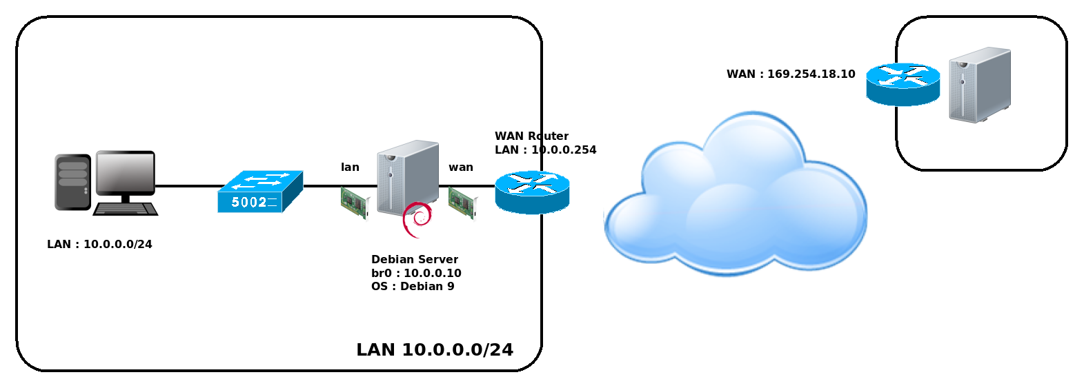 Here is a way to make QoS on an existent network. First thing to do is to measure the bandwidth of our wan link. Then we will add a Debian bridge just before our wan router. The example will show how to prioritize bandwidth to a remote IP (ex : 169.254.18.10).